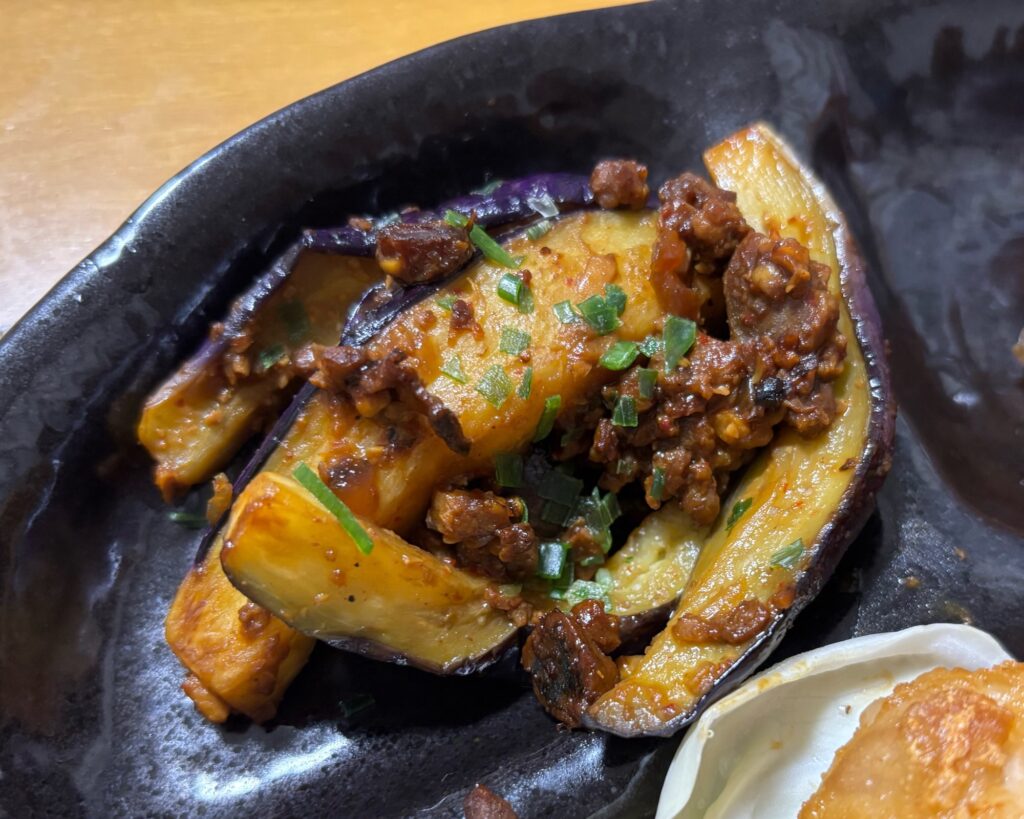 広島のおみやげで買った『食べるオイスターソース』でナスを炒めました。刻んだ牡蠣の身がひき肉のようで食べ応えのある一品が簡単にできました。