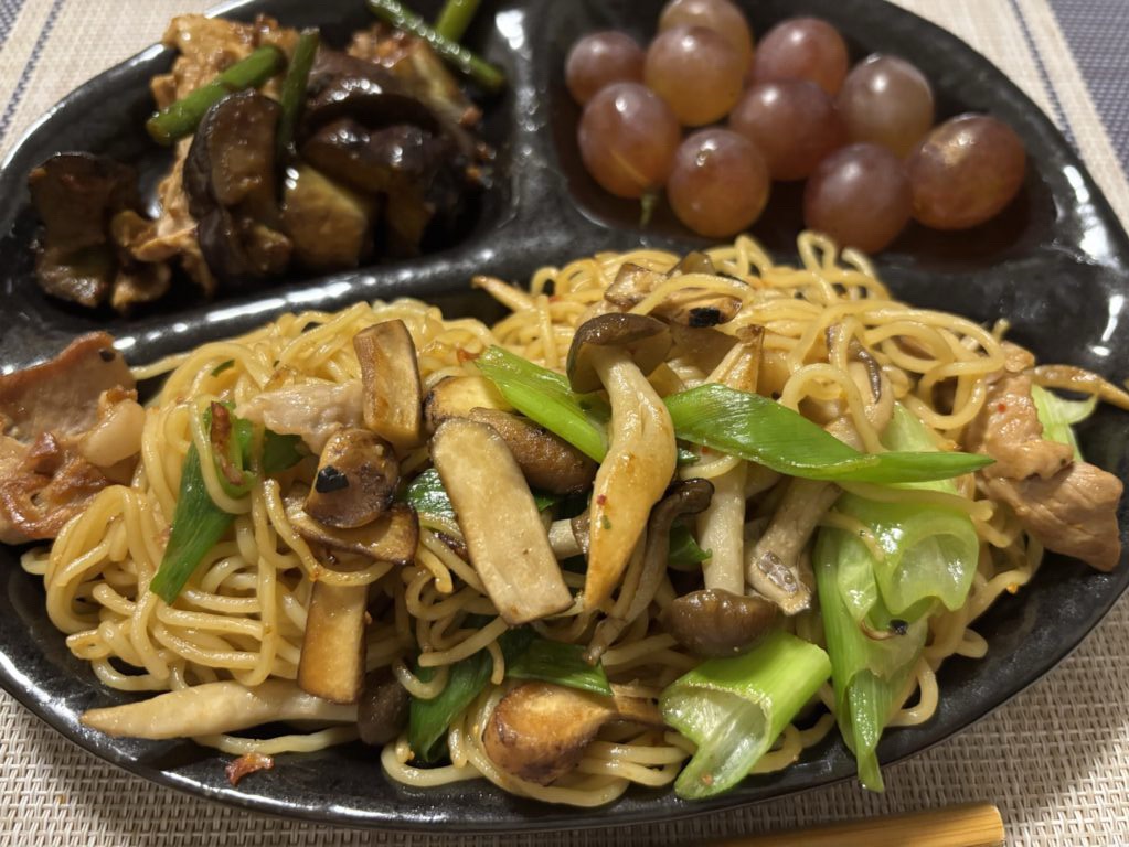 経済的です、焼きそば お手軽料理 X Facebook はてブ LINE Pinterest コピー 2025.11.262025.12.03 お手軽さ ★★★★★材料の安さ ★★★★★彼女の反応 ★★★☆☆彼女コメント 『遅くなった日は焼きそば便利だね。』 買っておくと冷蔵庫でしばらく置いておけるので便利です。具材も余った食材を使えるので経済的です。 目次 材料今日の副菜 材料 チルドの焼きそば しめじ ネギ しいたけ 豚こま 今日の副菜 なすとにんにくの芽と豚こまをしょうがと豆板醤で炒めて、食べるオイスターソースベース、醤油、酒などで味を整えました。 食べるオイスターソースはちょっとした炒めものに重宝してます。 食べるオイスターソース